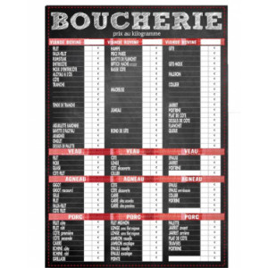 Affichez vos prix avec clarté et élégance grâce à nos panneaux d'affichage spécialisés. Que vous soyez boucher, boulanger, ou restaurateur, un panneau d'affichage prix bien conçu valorise vos produits, facilite les décisions d'achat et reflète votre professionnalisme. Avec une large gamme adaptée à tous les types de commerces, nos panneaux sont résistants, lisibles, et personnalisables pour s'intégrer parfaitement à votre espace de vente.