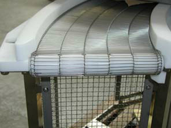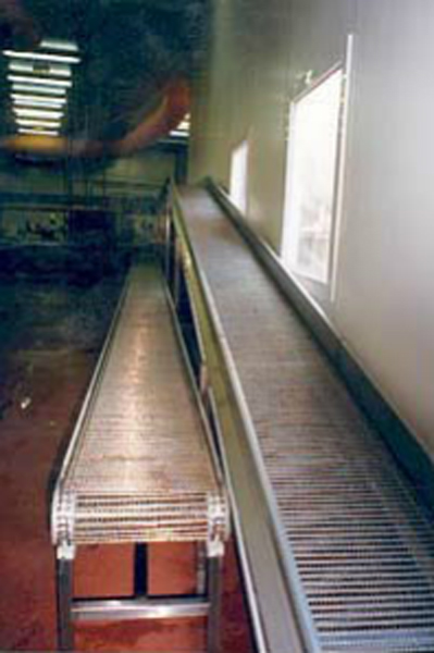 convoyeur à tapis métallique.