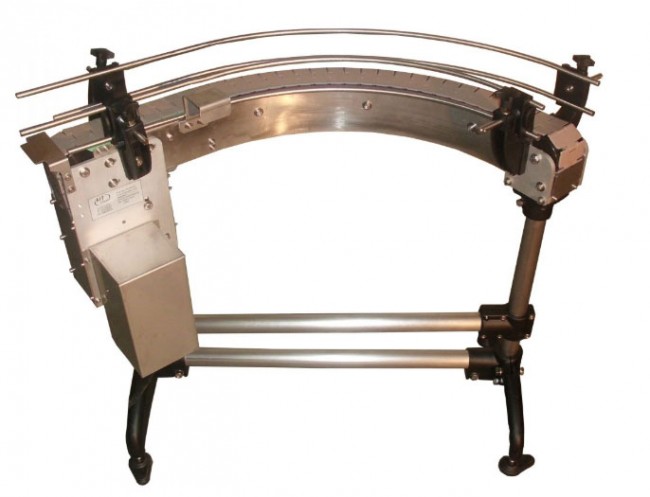 Il s'agit d'un convoyeur motorisé à la forme courbe et compacte de façon à optimiser la manipulation des produits et pièces et obtenir de la sorte une logistique et une productivité efficientes.
