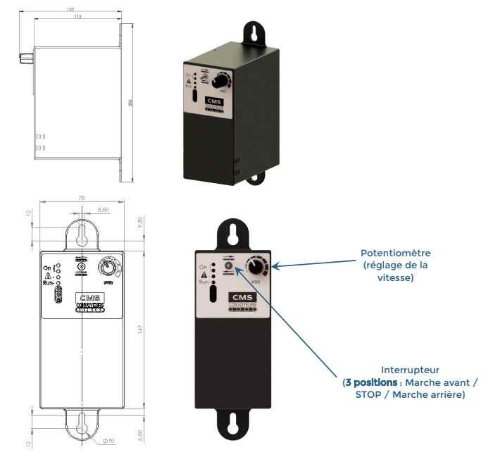 Grâce à son moteur pas à pas alimenté en 24V, vous profitez d’un contrôle précis de la vitesse, via une entrée analogique (0-5V ou 4-20 mA).