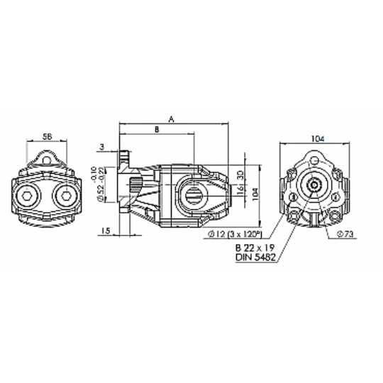 Type : Pompe hydraulique à engrenage bidirectionnelle, montage DIN à 3 trous.