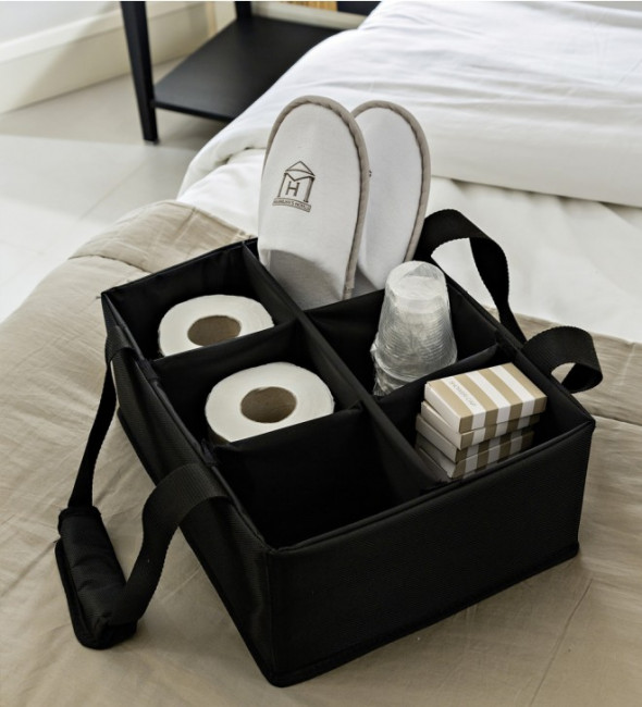 Il est utilisé pour transporter les fournitures, les produits de nettoyage et les équipements nécessaires à l'entretien et à la préparation des chambres d'hôtel.