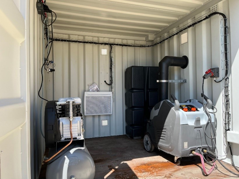 L'équipement de lavage haute pression intégré dans ce container assure une performance de nettoyage optimale.