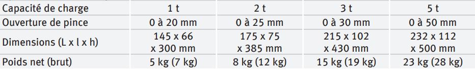 Les pinces sont conçues pour résister aux charges les plus lourdes.