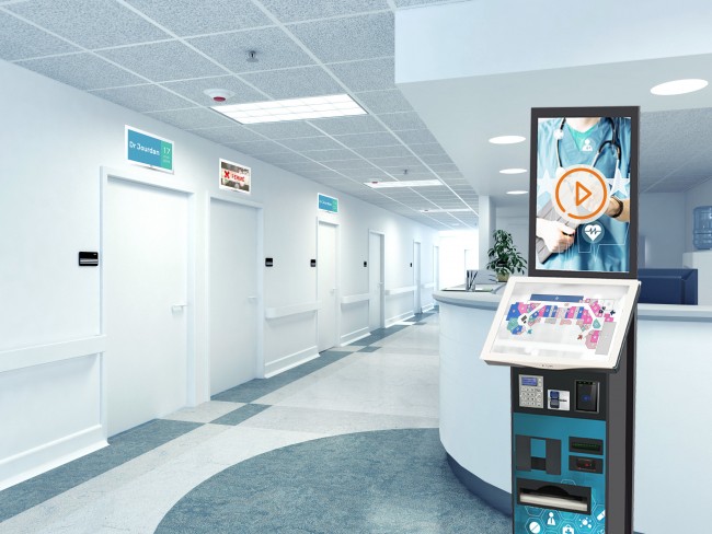 La borne d'accueil et préadmission hôpital est une borne interactive qui s'adapte tout particulièrement à l'accueil et la préadmission des patients dans les hôpitaux et cliniques.