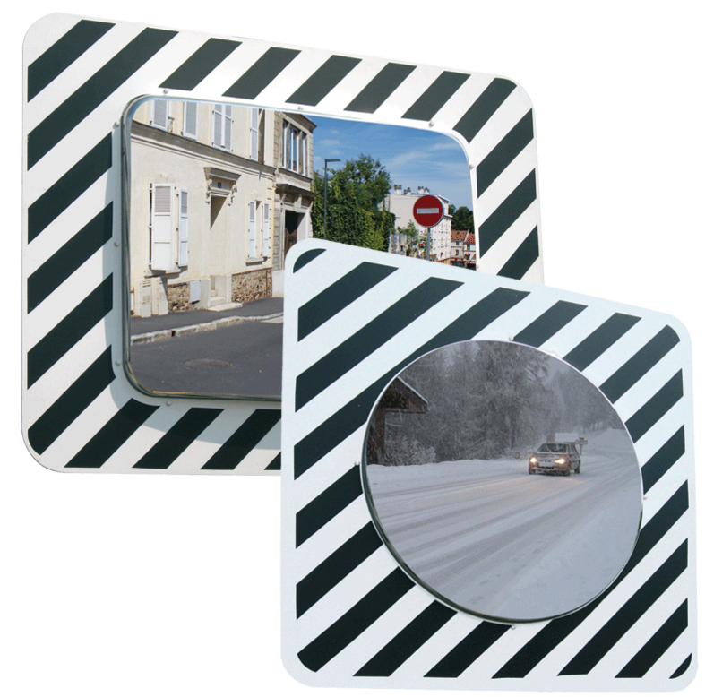Un poteau, un support pour 2 miroirs en acier galvanisé sont proposés comme option.
