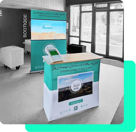 Compact, autonome et rapide à déployer, il vous permet de créer un espace d’exposition attractif en quelques minutes, sans contrainte technique ni connexion internet.