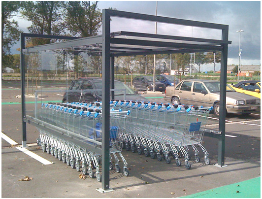 Nous souhaiterions rendre nos dépose caddies sur le parking plus voyants pour le client grace à un abris à chariots ou un panneaux signalétique.
