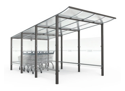 Cet abri pour chariots de supermarchés est conçu pour ranger et protéger les caddies devant des supermarchés.