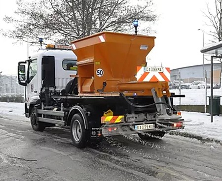 La saleuse thermique portée est destinée à faire fondre la neige sur les routes et trottoirs.