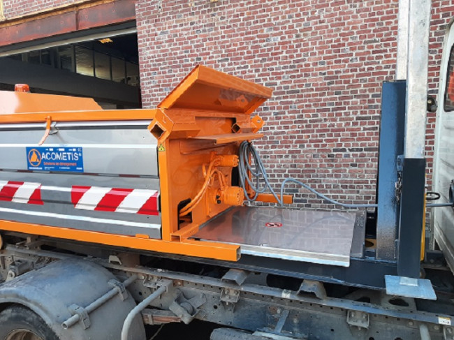 - L’alimentation est réalisée par un moteur auxiliaire essence de marque Honda commandé depuis le boitier de commande en cabine