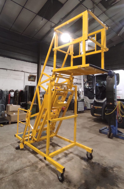 Cette échelle mobile permet d'accéder en toute sécurité aux bennes et conteneurs à déchets lors d'opérations de nettoyage ou de maintenance. Elle sécurise l'accès des opérateurs en évitant notamment le risque de chute lors de l'accès au dessus de ces bennes et conteneurs.