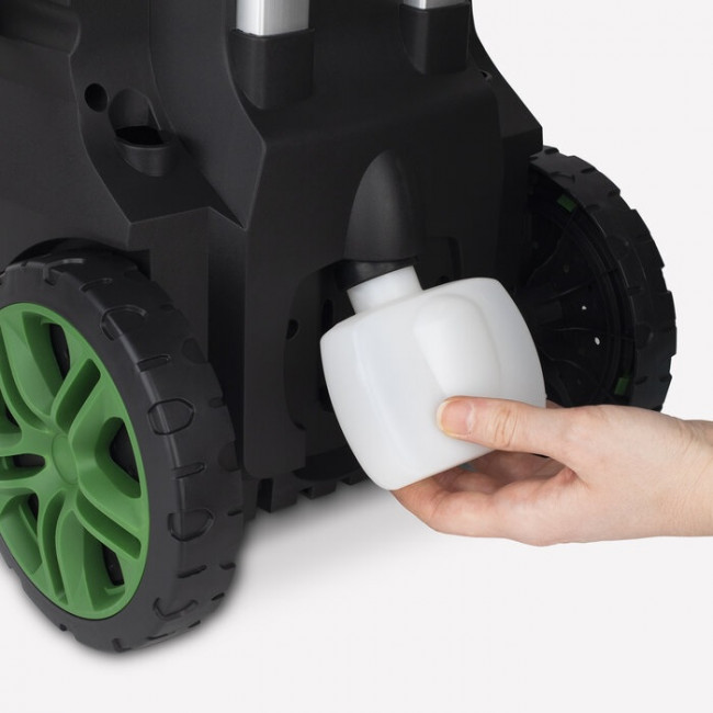 Grâce à ses roues robustes et sa poignée télescopique, déplacer ce nettoyeur haute pression est un jeu d'enfant.