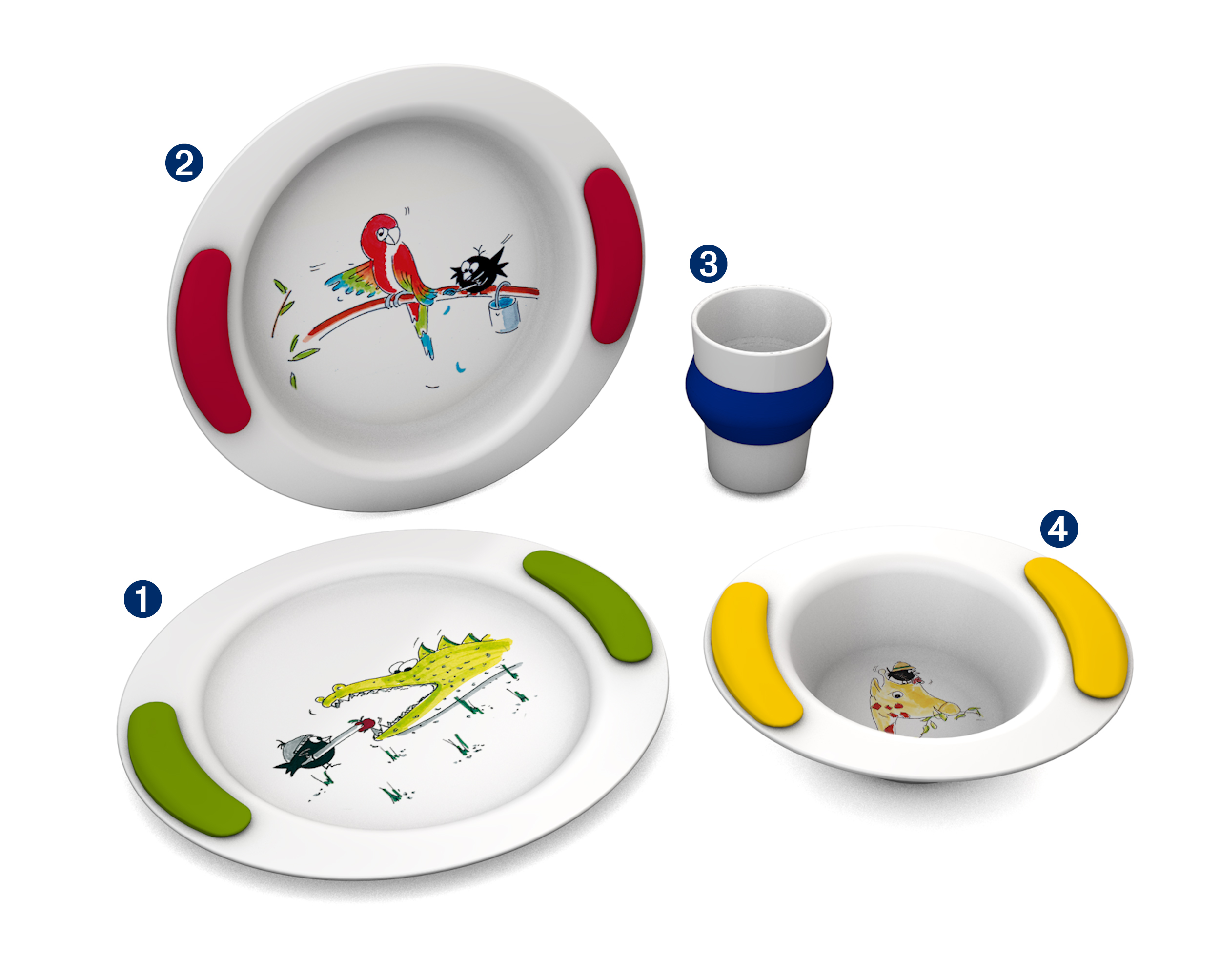 Découvrez la ligne de vaisselle ergonomique pour enfants en mélamine de haute qualité.