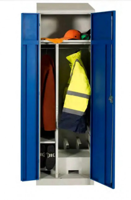 À l’intérieur, une cloison verticale sépare les vêtements de ville et de travail pour limiter les transferts d’odeurs et de salissures.