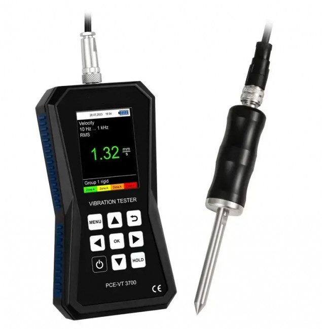 Le capteur de vibration en acier inoxydable, doté d’une pointe de touche et d’une poignée, garantit des mesures fiables.