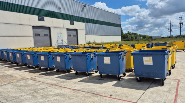 Conteneurs roulants utilisés pour la logistique interne des cartons et des films plastiques.
