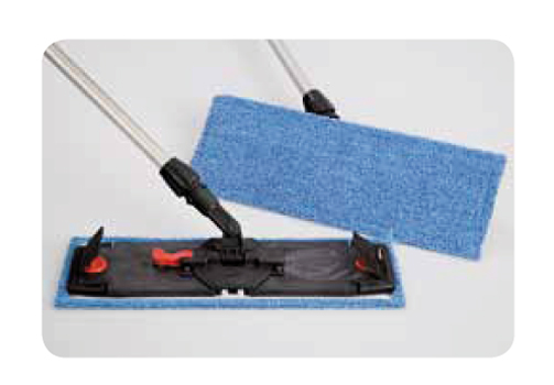 Le support se plie partiellement (frange à poches) ou complètement (frange à languettes) pour faciliter le rinçage, l’essorage ou le remplacement de la frange.