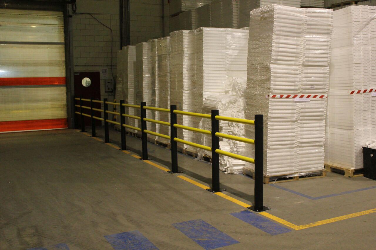 Besoin de 2 longueurs linéaires de 3m et 2m40 La fixation au sol doit permettre un démontage facile pour un accès maintenance 1 à 3 fois par an. Pas de circulation de chariots, seulement piétons et transpalettes