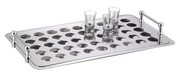 - Une grille perforée pour 45 verrines rondes ou hexagonales, alvéoles rondes Ø 3,7 cm.