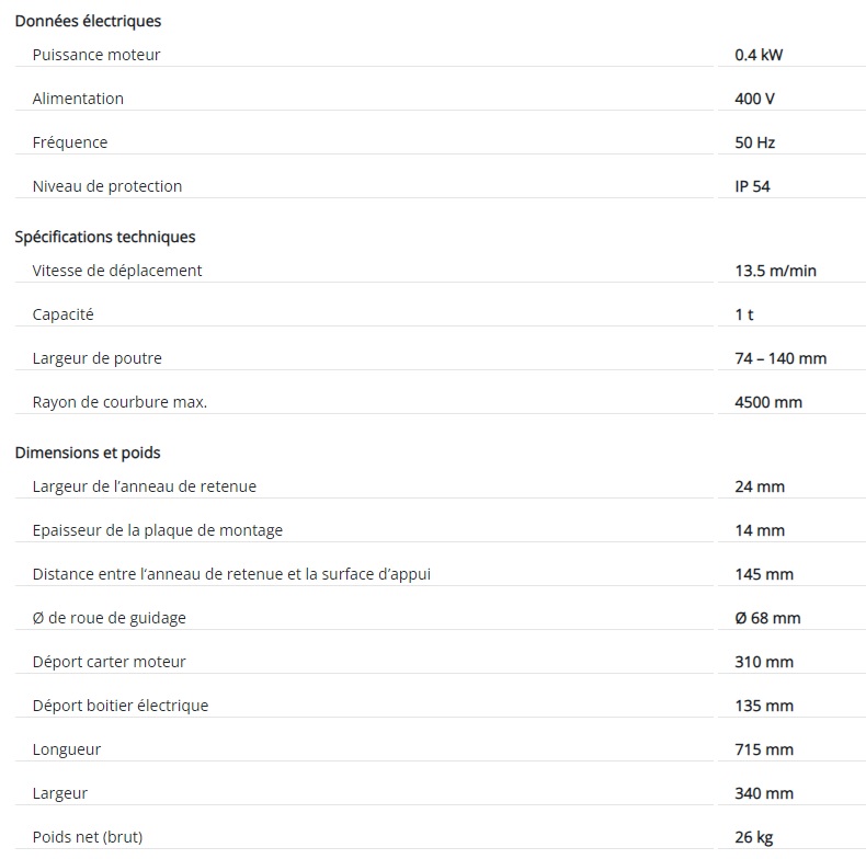 Ces chariots sont compatibles avec une large gamme de palans électriques et offrent une solution efficace pour les opérations de levage dans divers environnements industriels.
