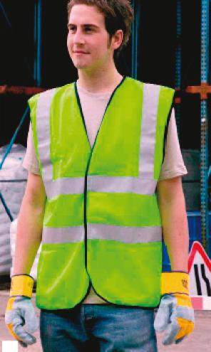 - Gilet jaune haute visibilité tricoté en polyester avec fermeture à crochet et boucle.