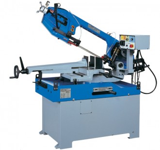 Cette scie à ruban manuelle massive est à descente assistée par vérin hydraulique.