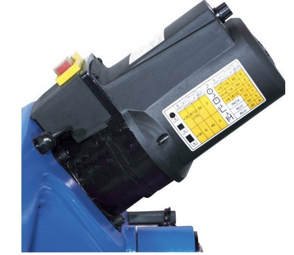 Cette scie à ruban 2000 W est conçue pour les coupes à l’équerre jusqu’à 60°.