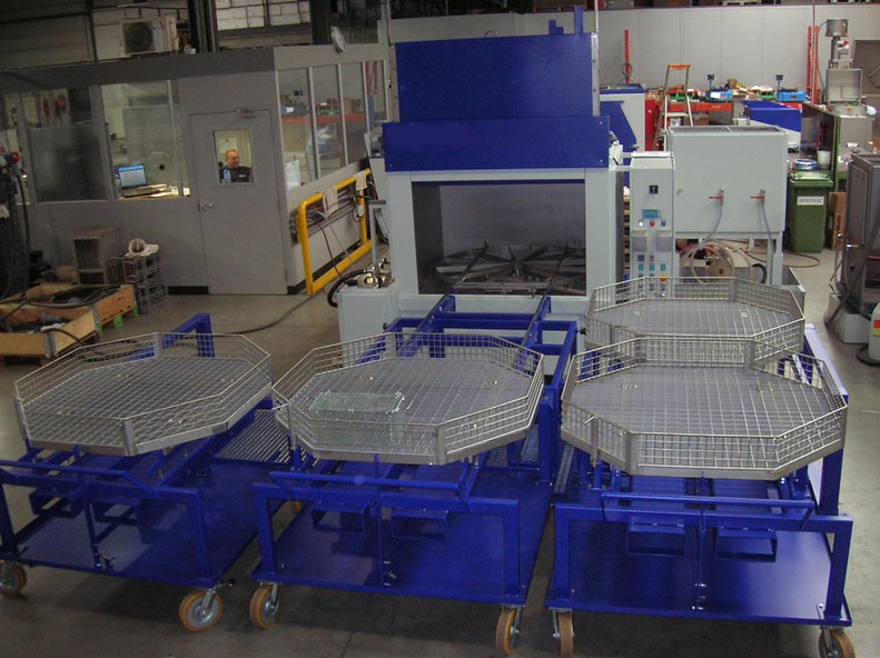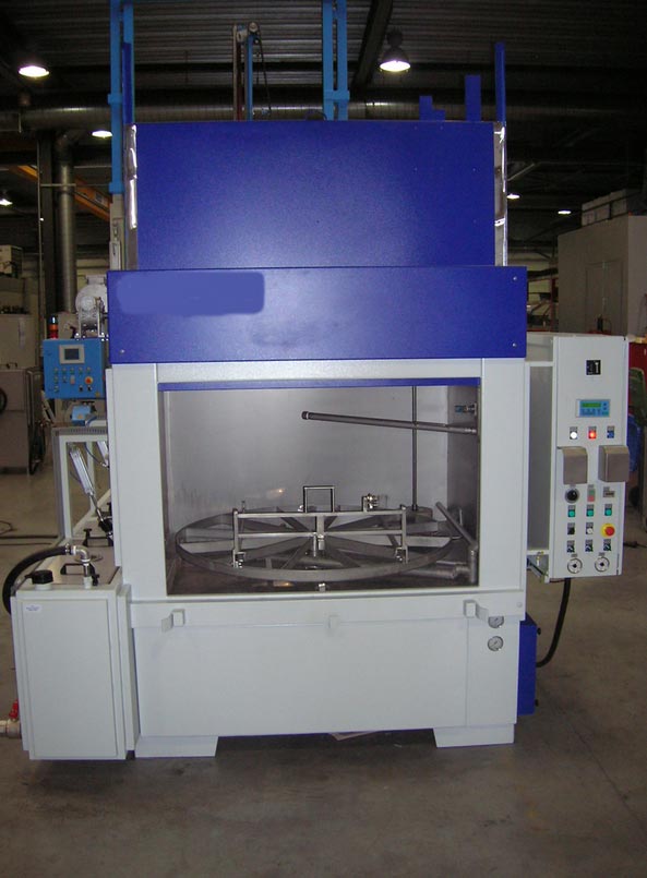Son fonctionnement est basé sur une plateforme rotative sur laquelle sont placées les pièces à traiter.