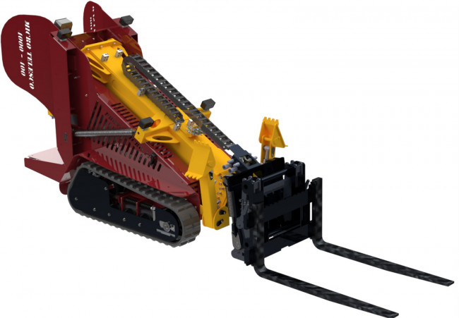 Il possède un bras télescopique équipé d'un système d'accrochage rapide des godets ou accessoires pouvant lever une charge de 400 kg à 4m00 ou 800kg à 60cm, moteurs de chenilles d'une puissance de 19kw chacun, d'un moteur thermique de 15 à 23 ch suivant modèle.