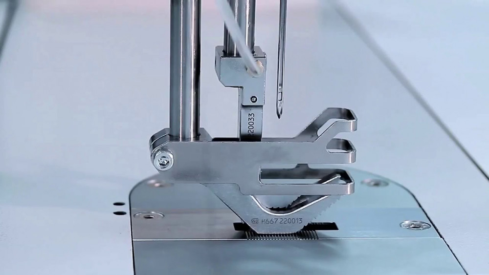 Machine à coudre professionnelle à triple entrainement assurant une vitesse de couture maximale de 1 250 points / min.