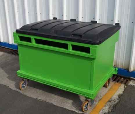 05/04/2019Benne à déchets à fond ouvrant pour des copeaux métalliques en 500 litres( Dimensions idéals en 1100/935mm hauteur 600. sans roulettes. Quantité: 1 benne