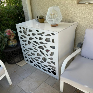 Ce cache climatiseur blanc est un abri permettant de dissimuler l'installation des climatiseurs et les protéger.