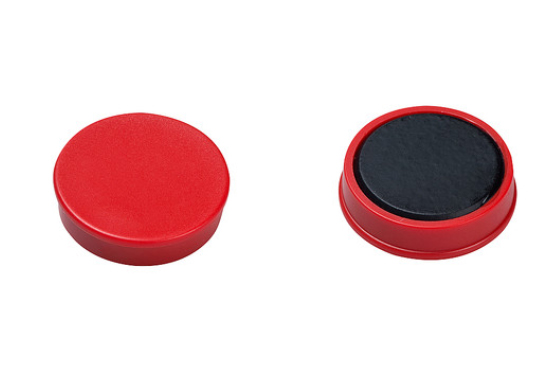 Punaises magnétiques avec boîtier en plastique. Aimants d´organisation en ferrite dure ou NdFeB, ronds