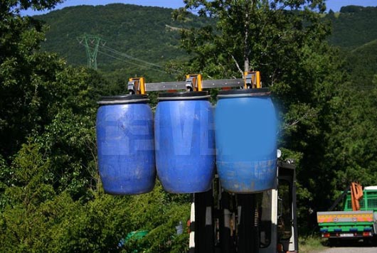 Nous chargeons des conteneurs maritimes 20 pieds avec des fûts non palettisés. Les fûts sont sur 2 hauteurs, les fûts du haut posés sur des panneaux en agglo. Cette opération aujourd"hui faite à la main est trop fastidieuse et nous souhaitons utiliser une fourche à monter sur notre chariot élévateur pour remplir ces conteneurs plus rapidement. Nous utilisons des fûts plastique à ouverture totale contenance 150Kg. Les fûts ne doivent pas s"abîmer pendant le chargement.