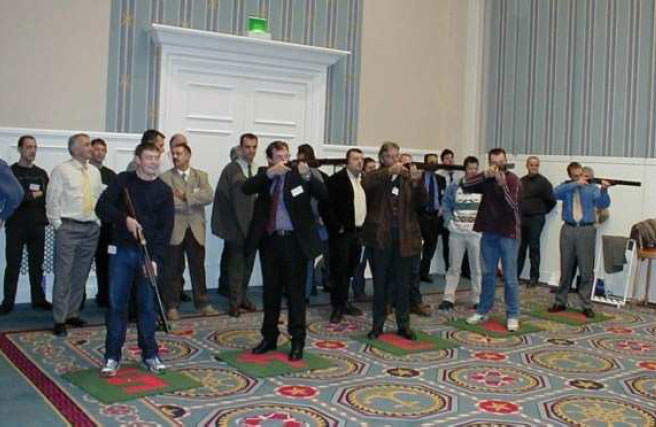 - Devant un décor thématique de 6 ou 9 m x 3 m (au choix : western, chasse ou spatial), vous devez viser juste sur des capteurs électroniques fixés sur le décor.