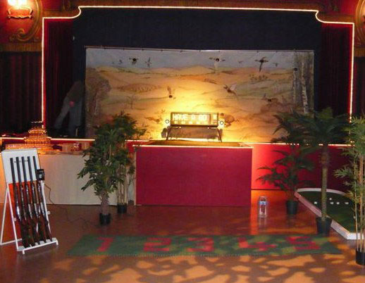 Devant un décor thématique de 6 ou 9 m x 3 m (au choix : western, chasse ou spatial), vous devez viser juste sur des capteurs &eacu