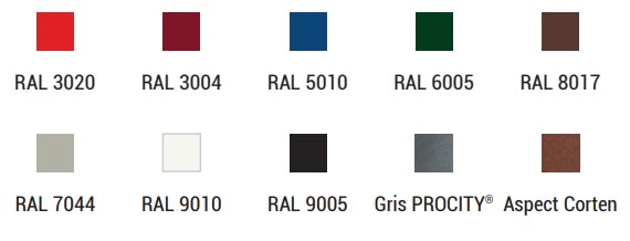 Le support est protégé par une peinture sur galva, résistante aux intempéries et disponible en plusieurs coloris RAL.
