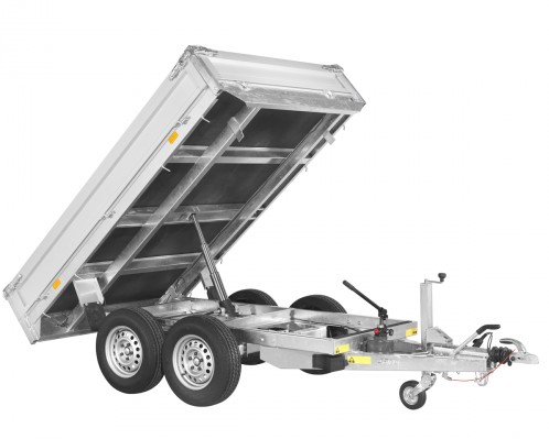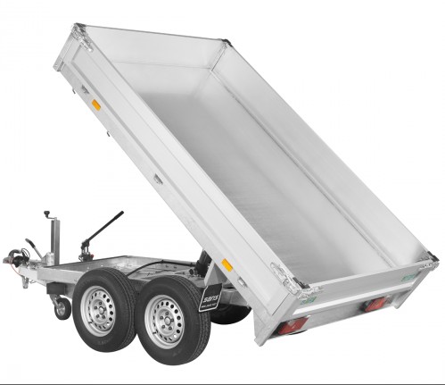 La remorque benne basculante PTAC jusqu'à 3000kg permet le déchargement rapide par l'arrière d'objets lourds et encombrants (sables, gravats, graviers, bois de chauffage, métaux, briques, etc.)