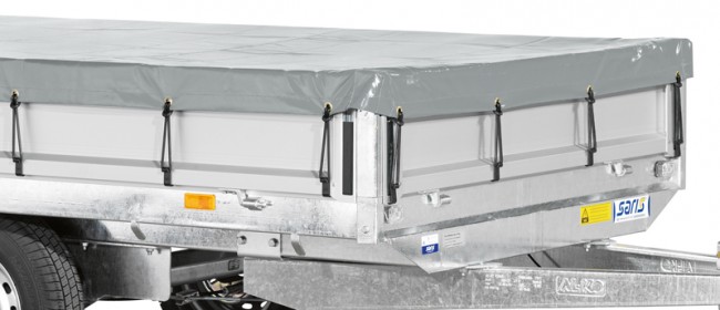 Le chargement est sécurisé grâce aux quatre poignées d'arrimage intérieures, remorque facile à manipuler avec ses poteaux et ridelles amovibles et sa pompe manuelle à double action.