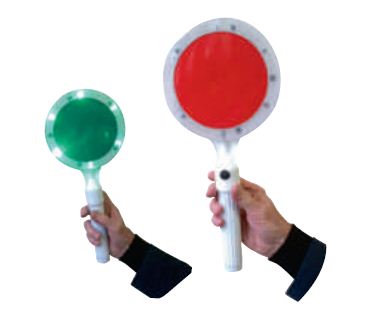 Cette raquette lumineuse LED est conçue pour organiser la circulation devant les écoles ou sur les chantiers.
