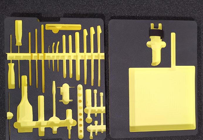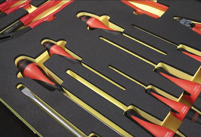 Solution de mousse de calage pour le rangement d'outillage, elle permet de poser, ranger et classer des outils et matériels de travail en ateliers sans perdre d'espaces.