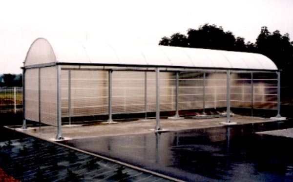 abri fumeur de 17ml de long x 5 ml de large fermé sur la totalité d"un coté,et à moitie sur l"autre avec toiture plate hauteur arriere de l"abri 2.90ml