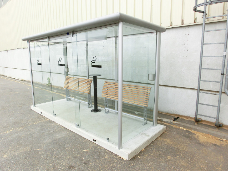 Cet abri fumeur extérieur est une construction industrielle destinée aux entreprises et collectivités.