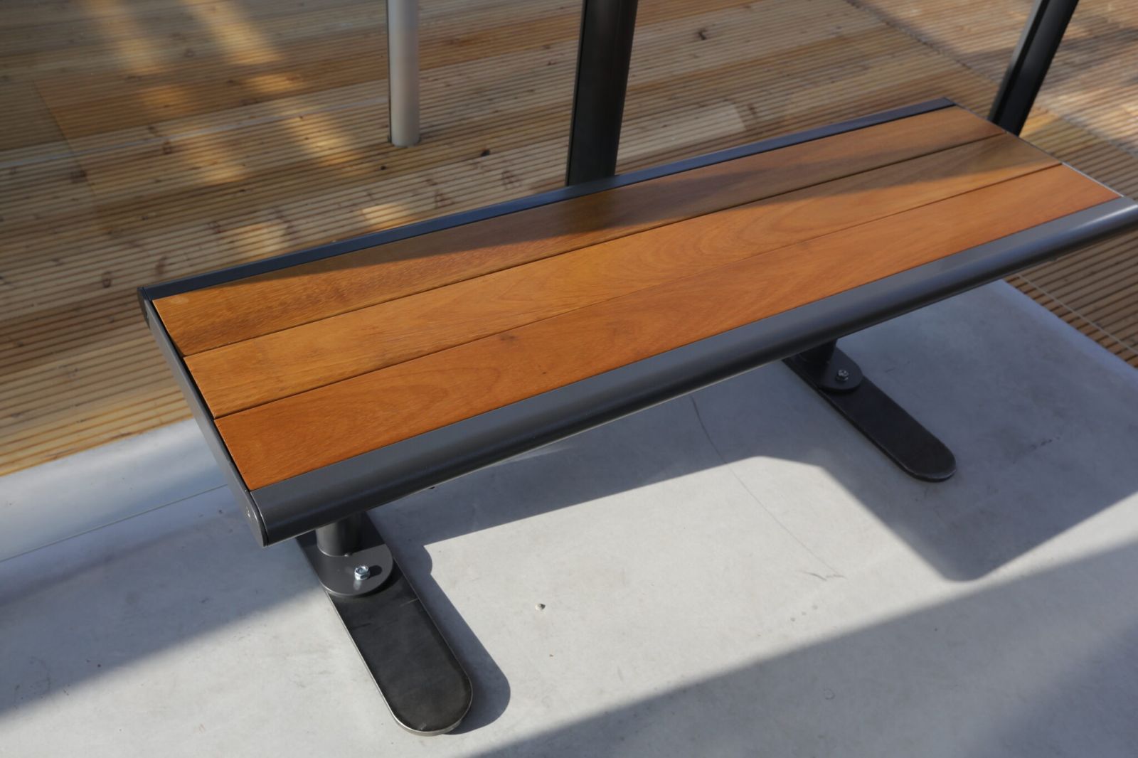 - Banc DELUXE 150 avec dossier, lamelles bois L=1500mm acier Stahl RAL 9006