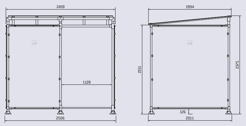 toiture mono pente de dimension longueur environs 4000mm profondeur 1900 mm et hauteur 2100