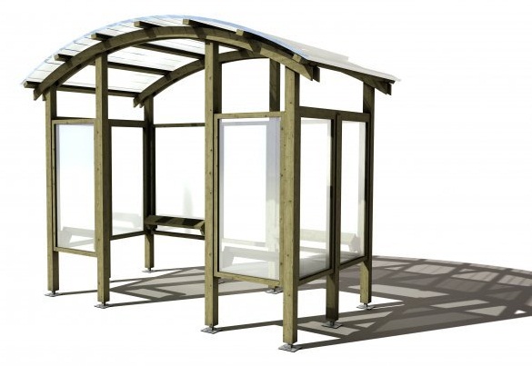 Il est fabriqué en bois pin traité classe IV, il comporte une toiture en lamellé-collé de section 95x35 mm.