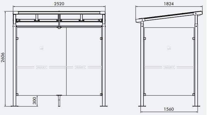 - Toiture : panneau en polycarbonate alvéolaire translucide épaisseur 10 mm, traité anti-UV