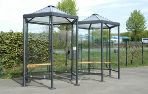 - Construction du pavillon fumeur en acier zingué à chaud et thermolaqué, couleur RAL au choix