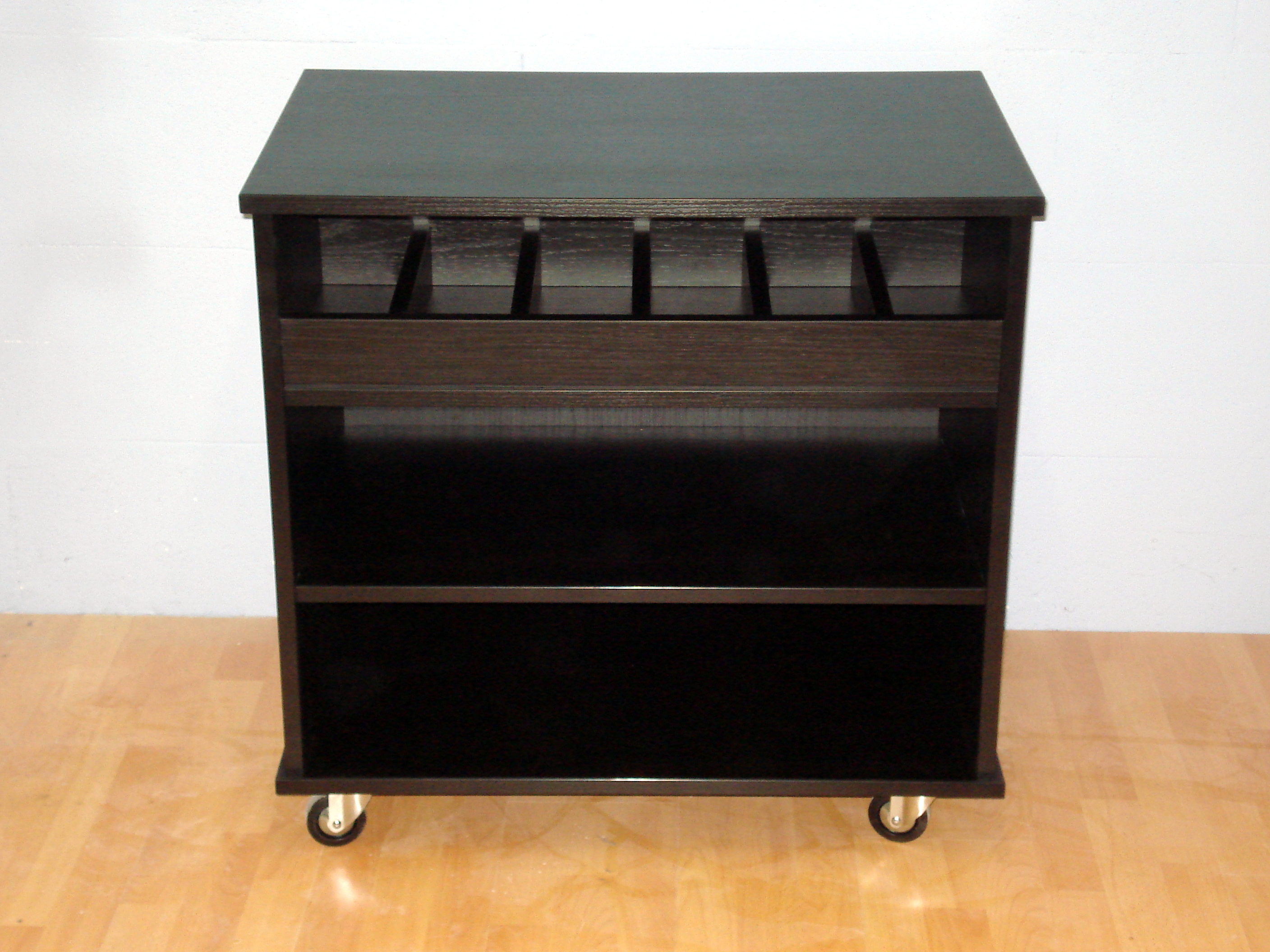 Cette desserte à couverts professionnelle en mélaminé chêne noir chant ABS 2mm sur roulettes, peut servir aussi comme guéridon de service.